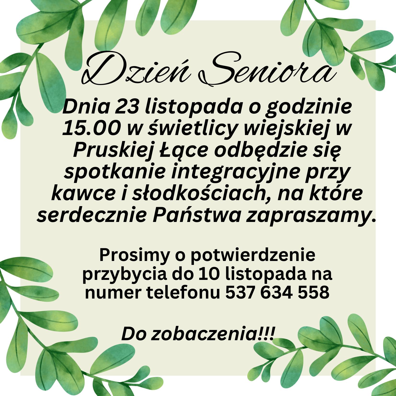 Prosimy o potwierdzenie przybycia do 10 listopada na numer telefonu: 537634558